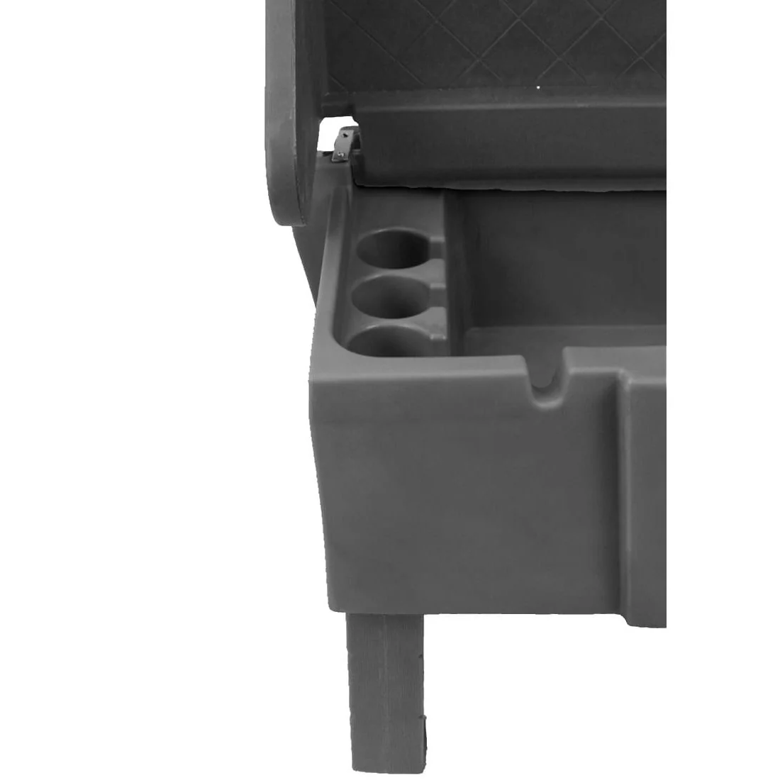The Groom-Pro Pet Tub™ is a portable grooming station that keeps your pet clean and well-groomed. The Groom-Pro’s small footprint will not monopolize your space, yet is large enough to accommodate most domestic pets. When opened, the lid acts as a splash guard to keep water in the basin area, and the door is reversible to act as a step stool for smaller animals. Deep accessory pockets keep cleaning products close at hand and secure against even the happiest wagging tail. There’s also a leash hook that keeps pets secure in the basin area. The drain features a soft plastic mesh cover that will filter hair and makes cleanup easy. Underneath, there is a standard thread mount to attach a standard 3/4″ hose. Close the lid, secure the door, and the tub turns into a raised platform to inspect or groom your dog. Setting up the grooming station requires no tools and can be completed in just a few minutes. The plastic construction is easy on paws and cleans quickly. The Groom-Pro Pet Tub™ is ideal for home use, professional groomers, and veterinarians.
