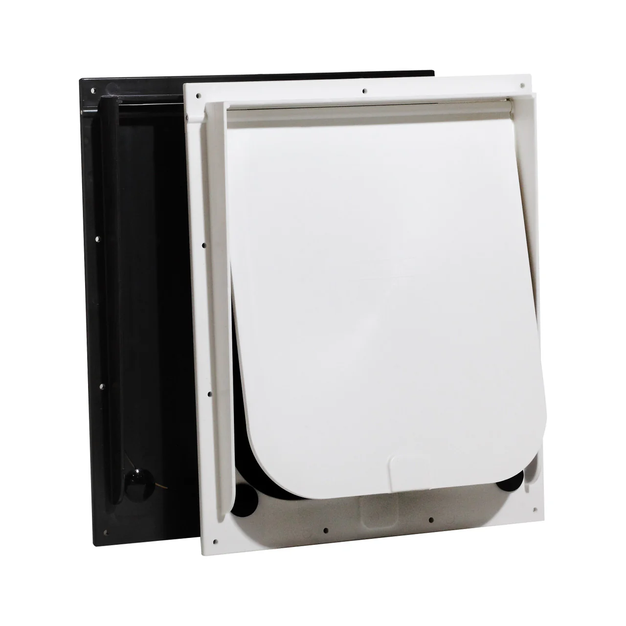 Pet door available in Bronze (dark brown) in addition to the original white color. Bronze shows less dirt and wear in heavy use environments like kennels and matches bronze aluminum screen enclosures.