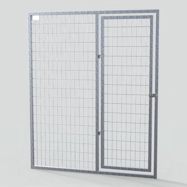 Each Pro-Series kennel panel utilizes 1 ¼” square tubing frame with welded mitered corners for superior strength and appearance. The top mitered corner design also eliminates all dirt and debris from entering the top of the frame and corroding it from the inside out. The square tubing frame holds 6 gauge 2×4 welded wire mesh. The inside of the frame is pre-drilled around the entire inner perimeter; then each end of the wire mesh is inserted into the pre-drilled frame and welded around every wire. This door panel has a 2-foot door which swings in-or-out. The door panel is also reversible offering a right or left handed installation. The door hinge design allows for the door to be removed by lifting it straight up but only if the door is opened to at least 90 degrees, this is a handy feature for cleaning. These unique features truly make the TK Pro-Series a versatile kennel system. The included spring loaded door latch is solid stainless steel with an internal stainless spring that holds the latch shut and prevents your pet from opening the door. In addition to having a handle on both sides for ease of use, the latch is also lockable for your pet’s safety. The ease of one handed door opening during feeding time as well as doors that open in or out will save you time as well as the frustration of trying to open the door with feed bowls in your hand.
